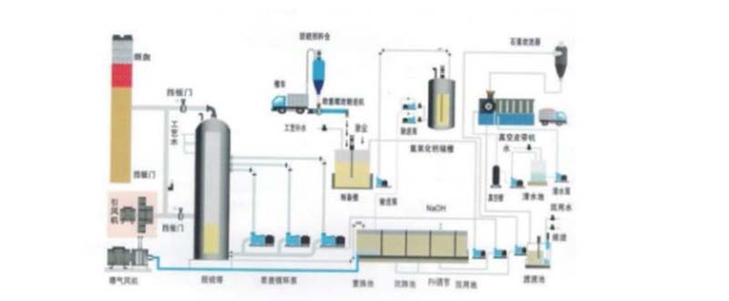 雙堿法脫硫工藝,簡稱雙堿法,是較常用的煙氣脫硫法。鈉鈣雙堿法采用火堿吸收SOz,石灰還原再生。再生後吸收劑循環使用,無廢水排放。窯爐煙氣經除塵器除塵後進入脫硫塔,並與脫硫液中的堿性脫硫劑在霧化區內充分接觸反應,完成煙氣的脫硫吸收。